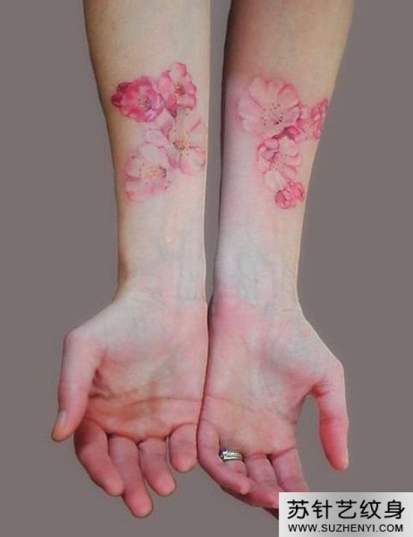 手臂盛开桃花纹身_臂部纹身图案大全_纹身图吧