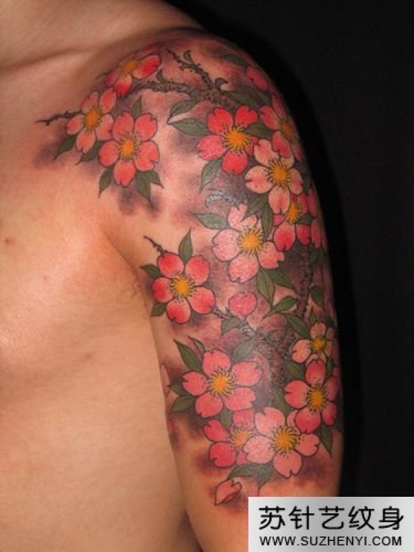 手臂硬汉樱花刺青_臂部纹身图案大全_纹身图吧