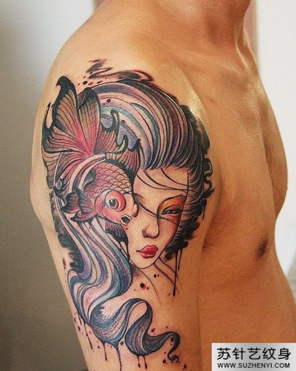 大臂金鱼美女纹身_臂部纹身图案大全_纹身图吧