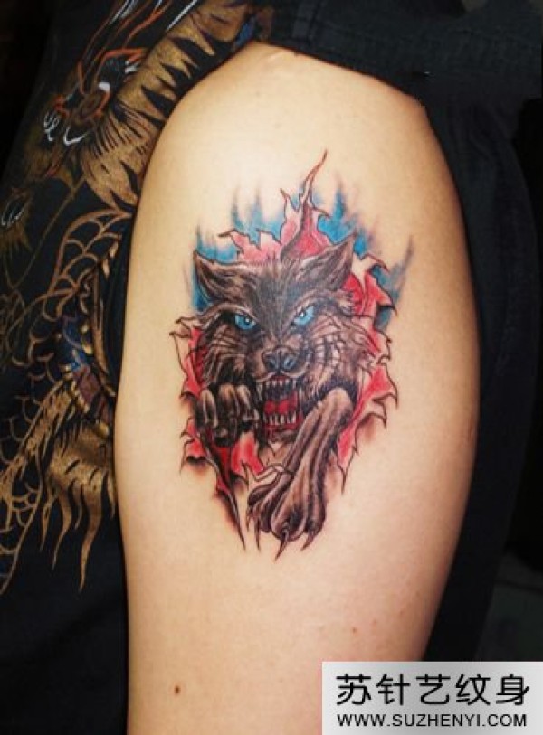 时尚狼头手臂纹身_臂部纹身图案大全_纹身图吧