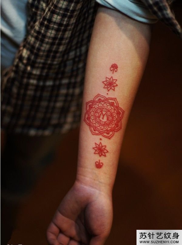 红色梵花手臂刺青图_臂部纹身图案大全_纹身图吧