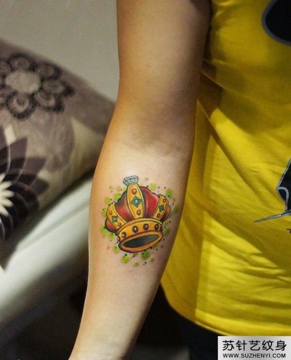 手臂彩色皇冠纹身图案_臂部纹身图案大全_纹身图吧
