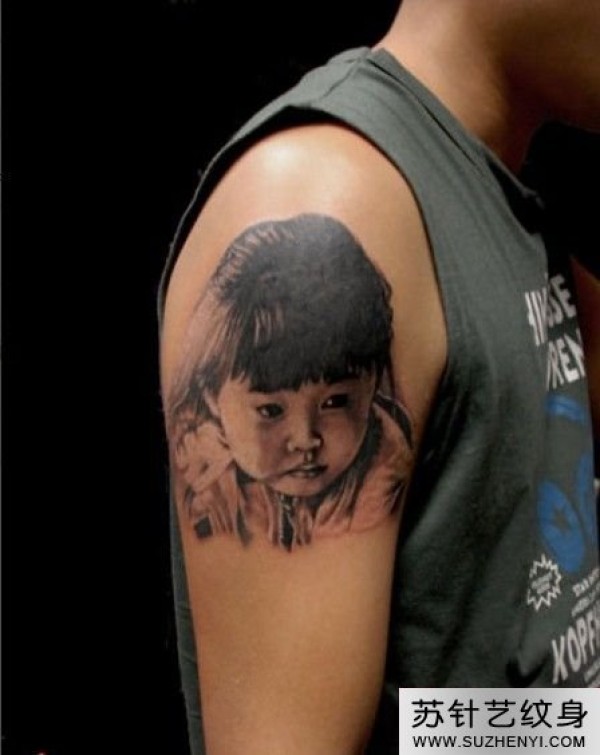 手臂小孩头像纹身图案_臂部纹身图案大全_纹身图吧