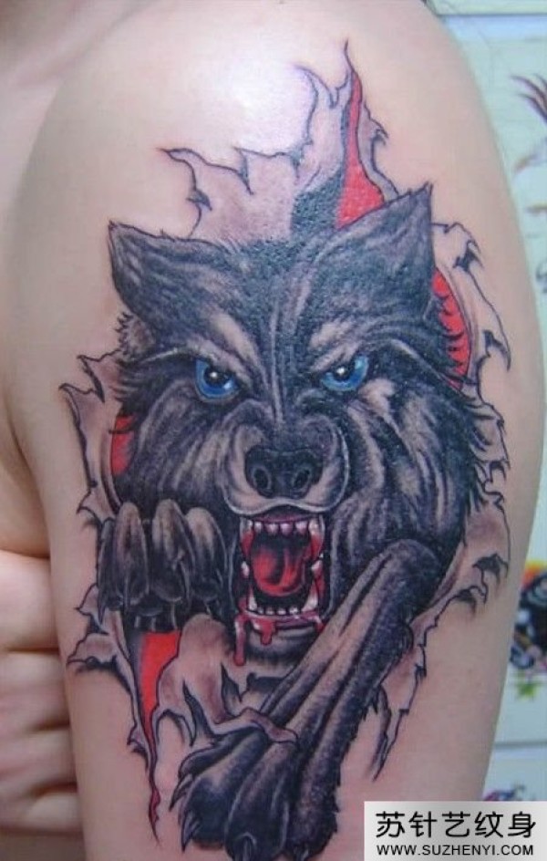 手臂滴血狼头纹身_臂部纹身图案大全_纹身图吧