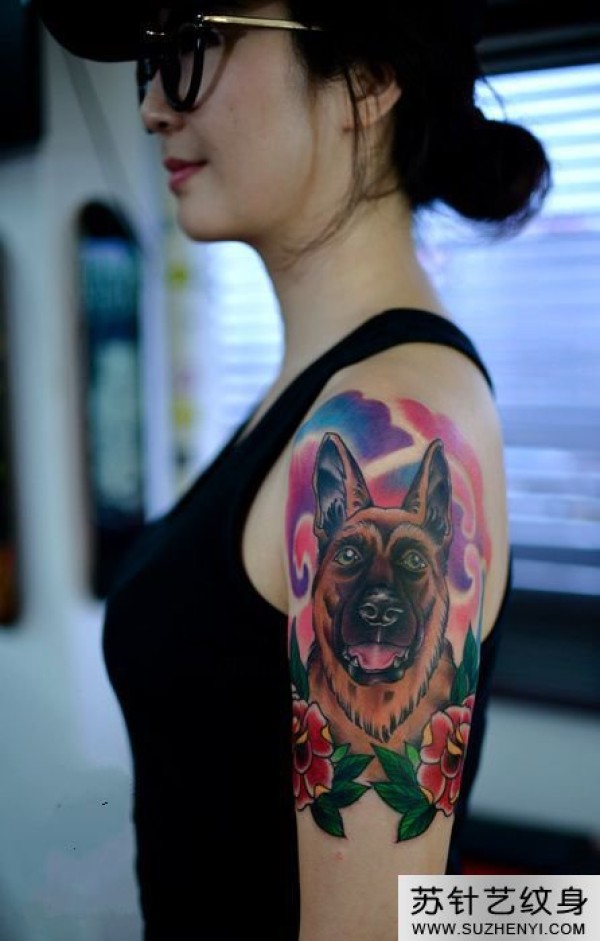 手臂德国黑背狗狗纹身_臂部纹身图案大全_纹身图吧