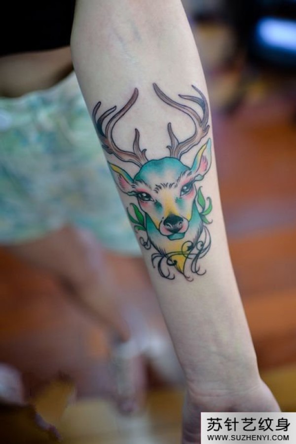 小臂彩绘鹿头纹身_臂部纹身图案大全_纹身图吧