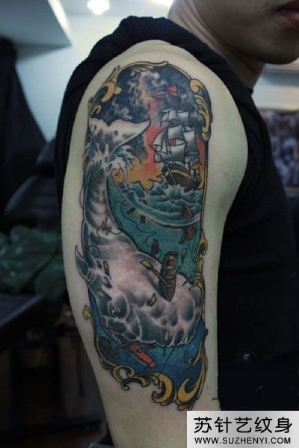鲸鱼帆船手臂纹身_臂部纹身图案大全_纹身图吧