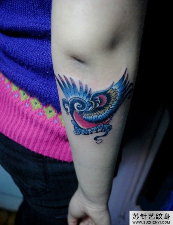 手臂彩色燕子纹身_臂部纹身图案大全_纹身图吧
