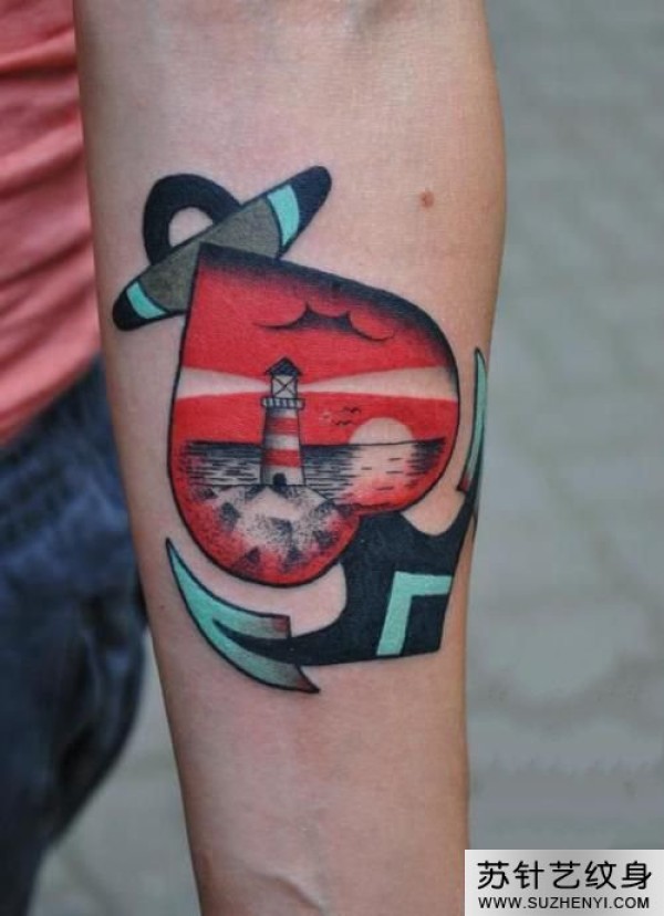 红心锚灯塔手臂纹身_臂部纹身图案大全_纹身图吧