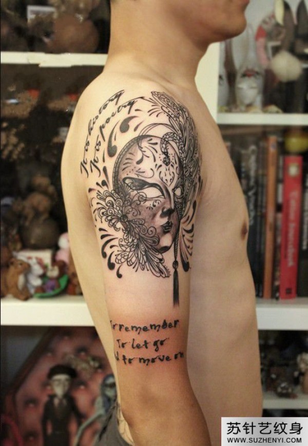威尼斯面具个性手臂纹身_臂部纹身图案大全_纹身图吧