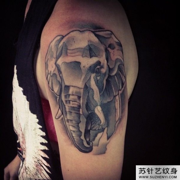 手臂大象雕塑时尚纹身_臂部纹身图案大全_纹身图吧