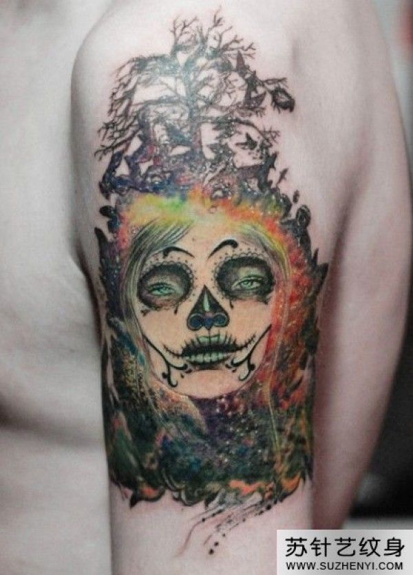星空精灵树手臂纹身_臂部纹身图案大全_纹身图吧