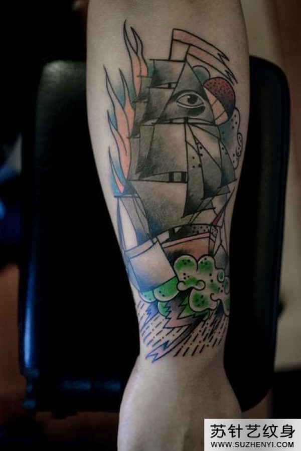 大船创意手臂纹身_臂部纹身图案大全_纹身图吧
