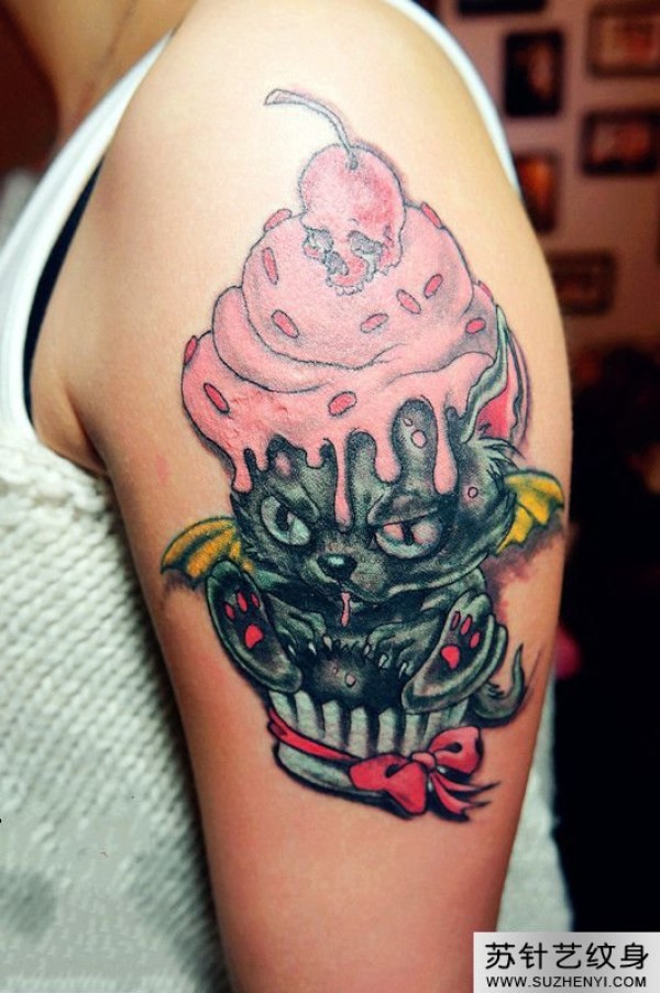 创意奶油小猫手臂纹身_臂部纹身图案大全_纹身图吧