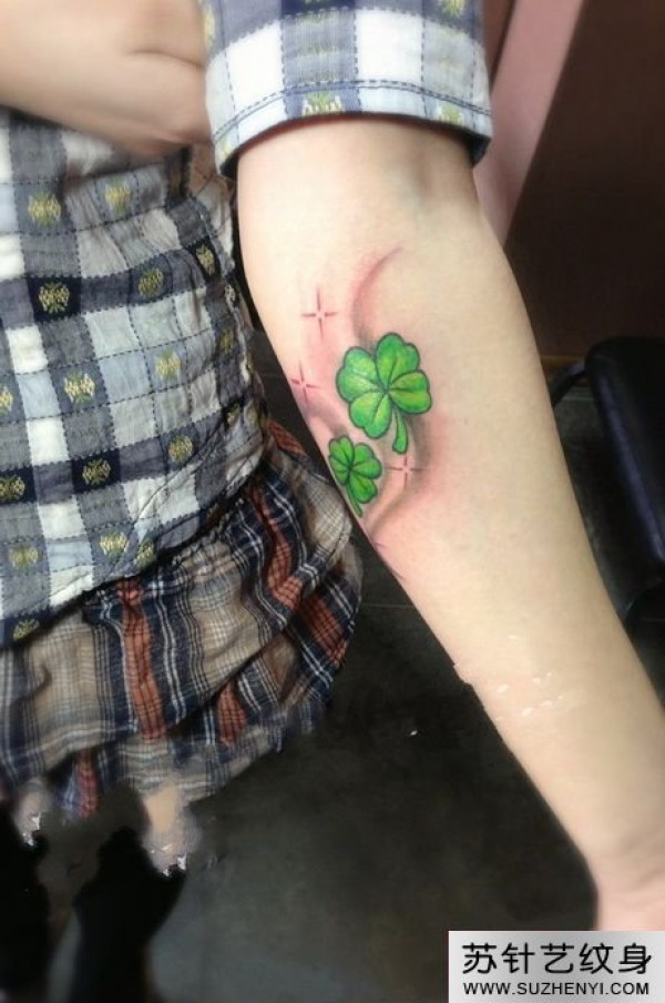 手臂唯美四叶草纹身_臂部纹身图案大全_纹身图吧