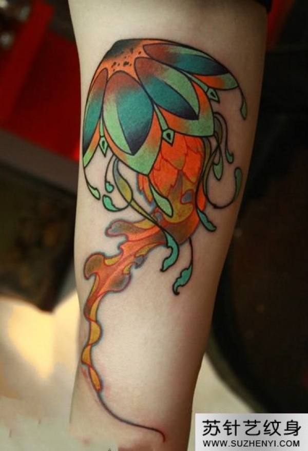 彩色水母手臂纹身_臂部纹身图案大全_纹身图吧