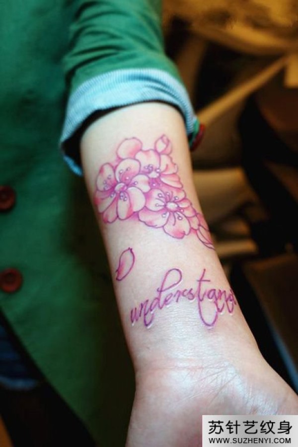 粉色小桃花手臂纹身_臂部纹身图案大全_纹身图吧