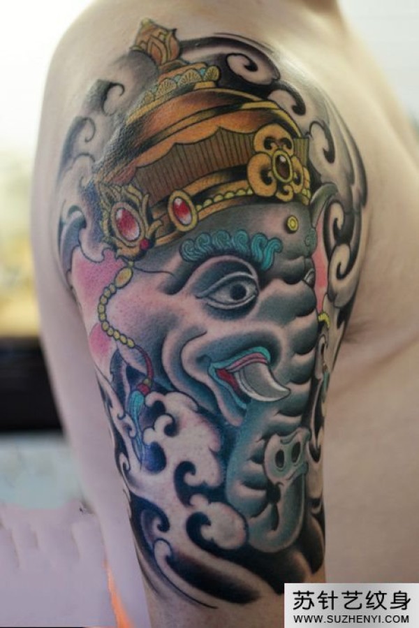 象神富贵手臂纹身_臂部纹身图案大全_纹身图吧