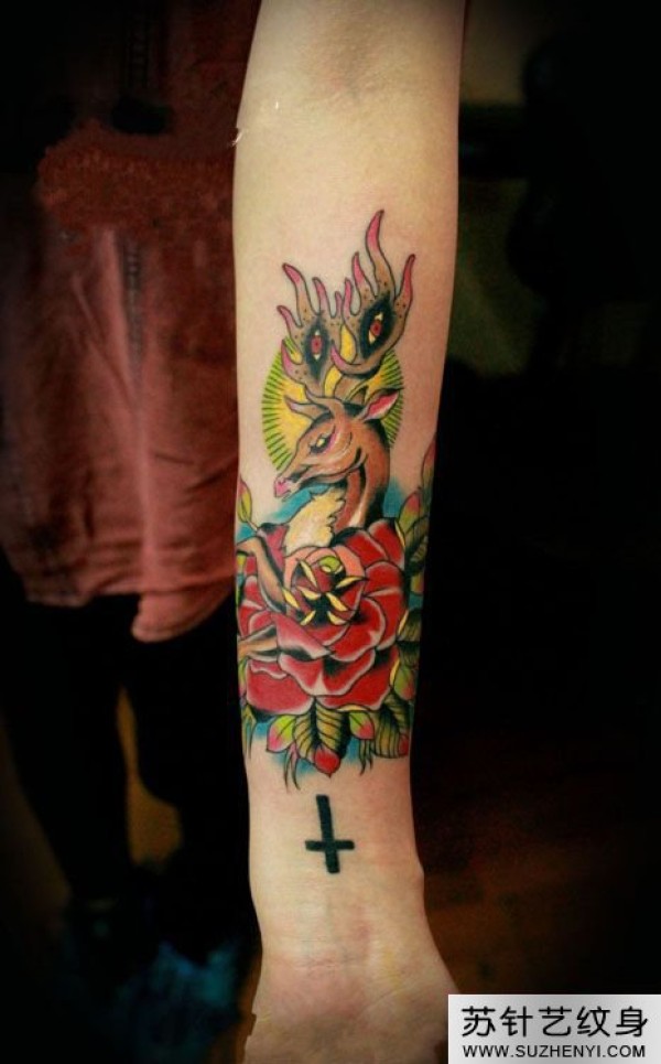 彩色麋鹿手臂纹身_臂部纹身图案大全_纹身图吧