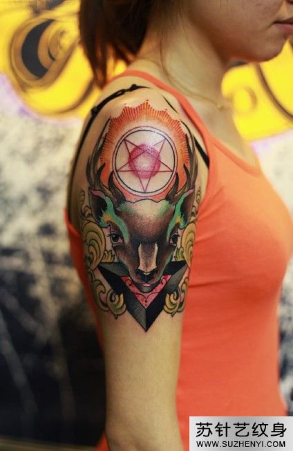 另类鹿头像手臂纹身_臂部纹身图案大全_纹身图吧