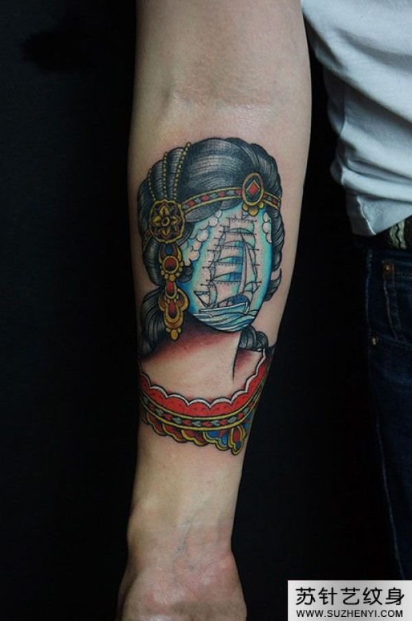 帆船美女手臂纹身_臂部纹身图案大全_纹身图吧