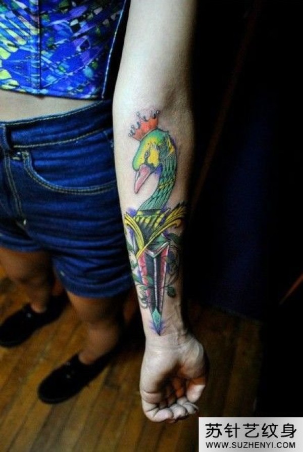天鹅与剑手臂纹身_臂部纹身图案大全_纹身图吧