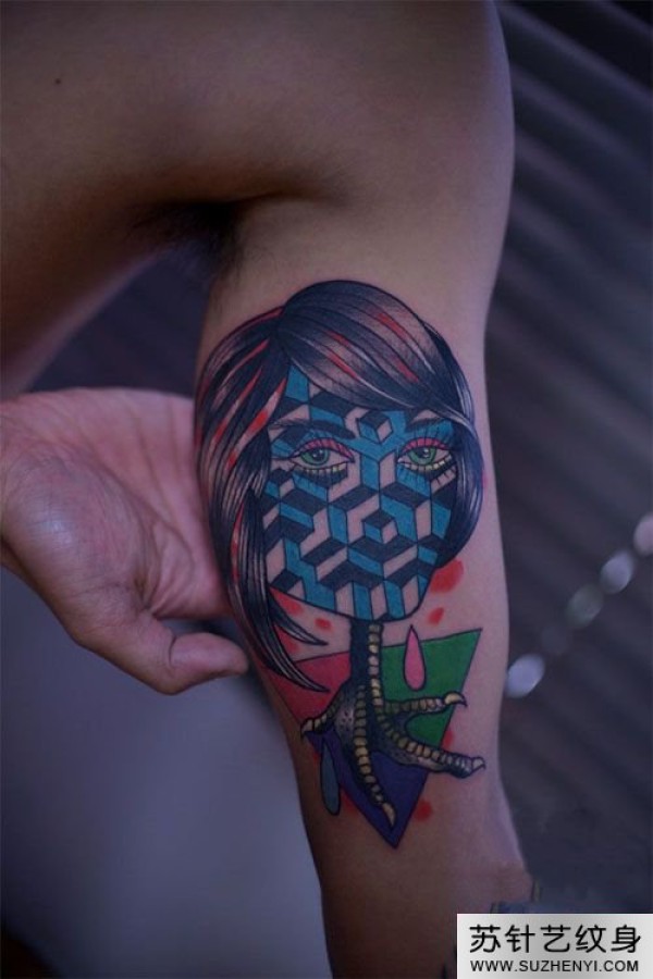 抽象头像另类手臂纹身_臂部纹身图案大全_纹身图吧