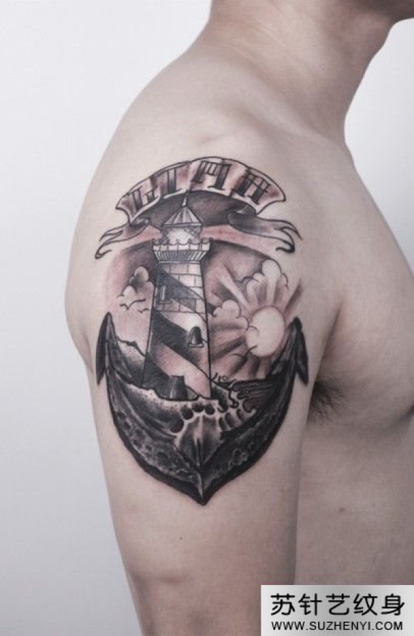 船锚与灯塔手臂纹身_臂部纹身图案大全_纹身图吧