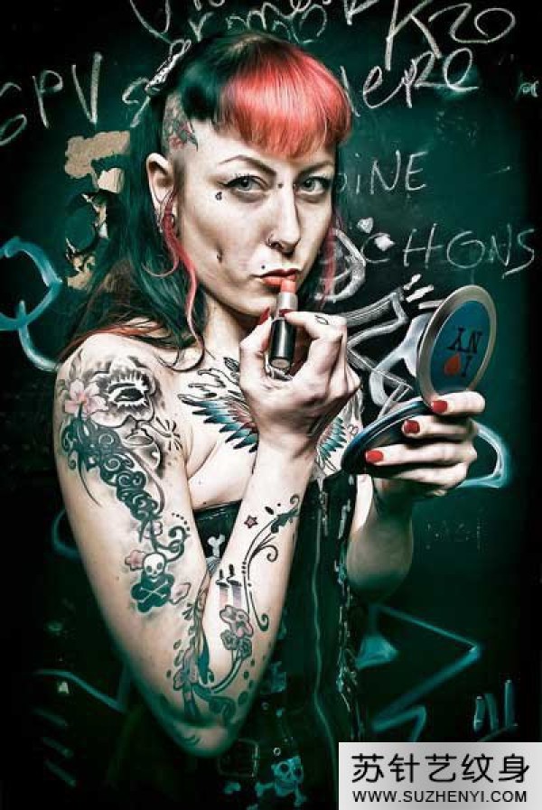 红唇美女手臂上纹身_臂部纹身图案大全_纹身图吧