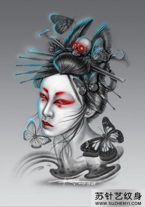 创意性感时尚艺妓纹身手臂_臂部纹身图案大全_纹身图吧