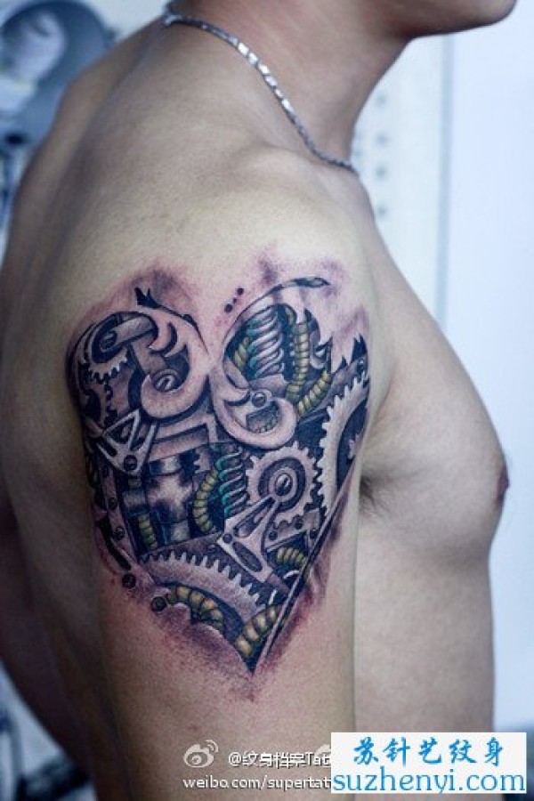 帅气时尚的爱心机械臂纹身图案_臂部纹身图案大全_纹身图吧