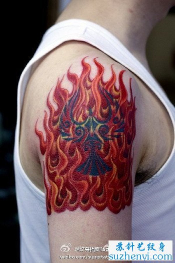 男生手臂经典的火焰纹身_臂部纹身图案大全_纹身图吧