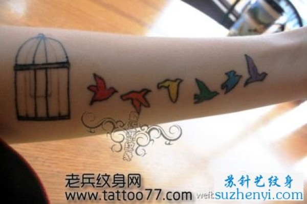手臂小鸟鸟笼纹身_臂部纹身图案大全_纹身图吧