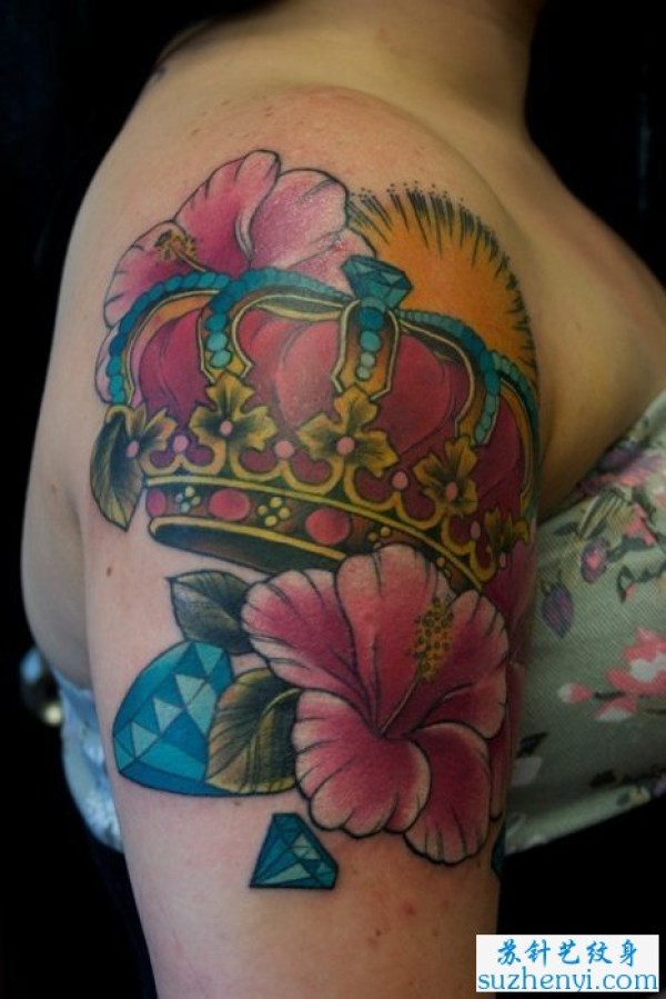 手臂唯美的彩色皇冠纹身图案_臂部纹身图案大全_纹身图吧