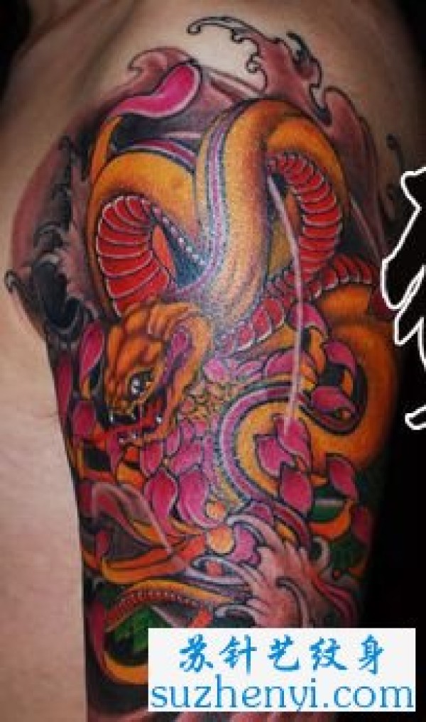 手臂彩色蛇纹身图片_臂部纹身图案大全_纹身图吧