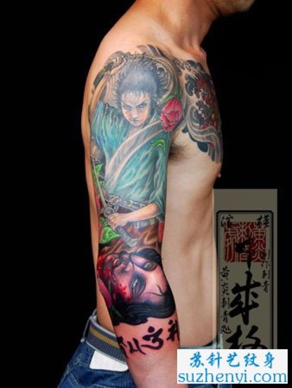 手臂日本武士美女纹身图案纹身_臂部纹身图案大全_纹身图吧