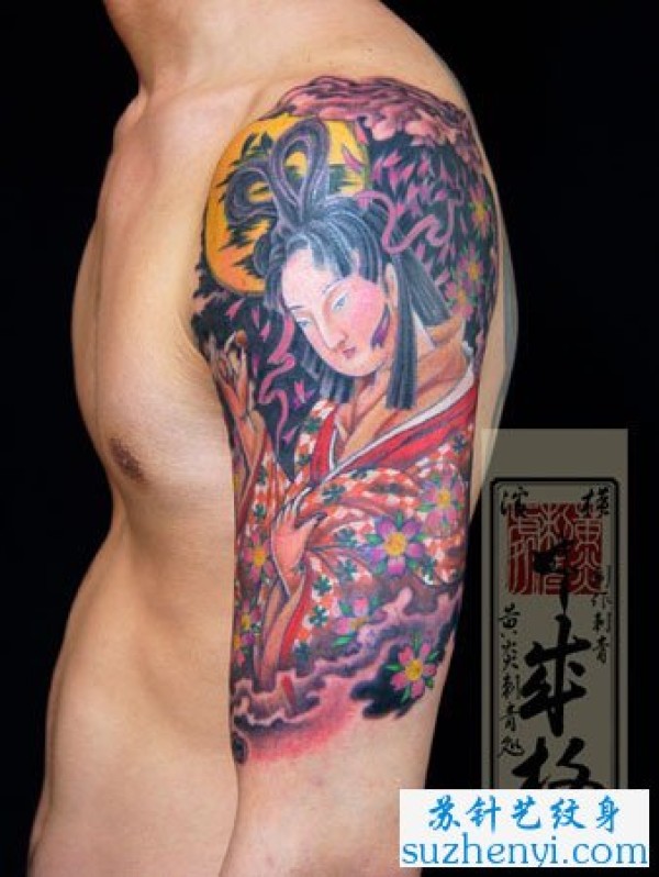 手臂彩色日本美女艺妓纹身图案_臂部纹身图案大全_纹身图吧