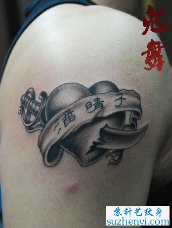 手臂一枚匕首穿心纹身_臂部纹身图案大全_纹身图吧