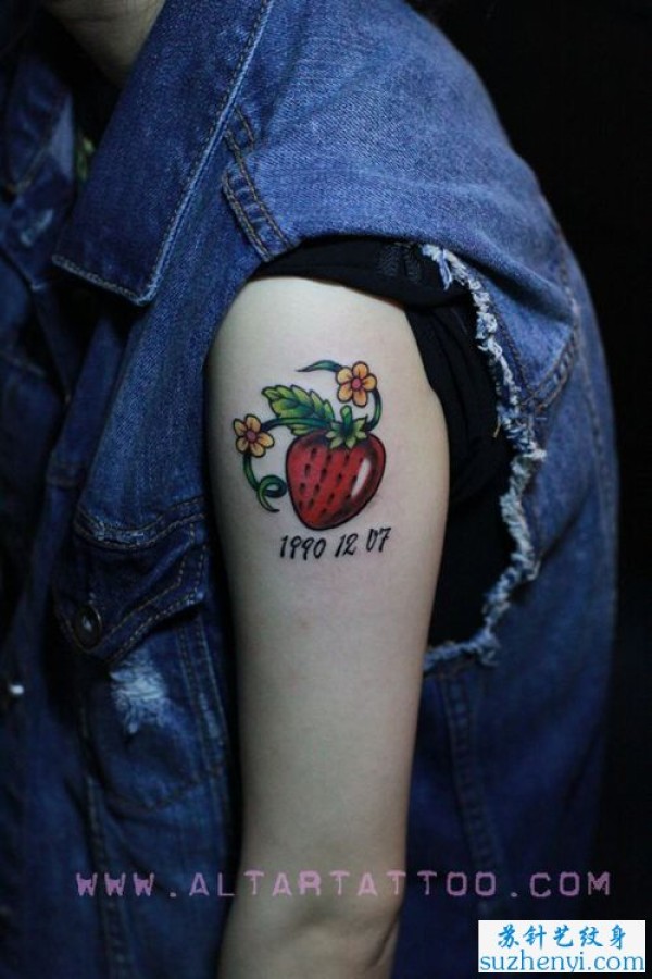 手臂彩色小草莓纹身_臂部纹身图案大全_纹身图吧