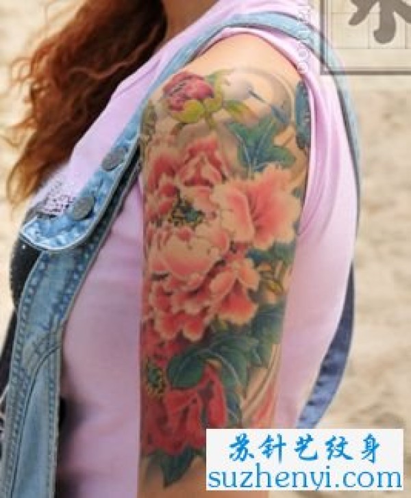 手臂彩色牡丹花纹身_臂部纹身图案大全_纹身图吧