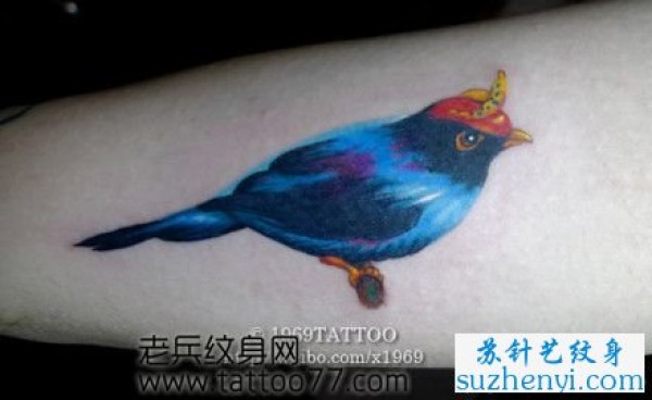 手臂彩色小鸟喜鹊纹身_臂部纹身图案大全_纹身图吧