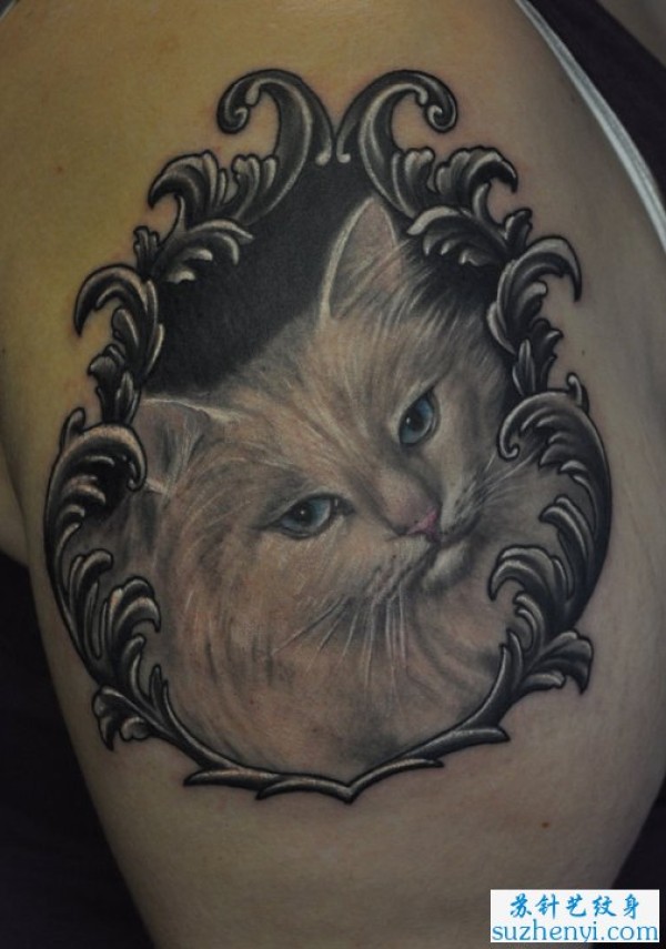 手臂白色猫咪纹身_臂部纹身图案大全_纹身图吧