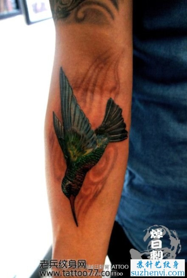 手臂蜂鸟纹身_臂部纹身图案大全_纹身图吧