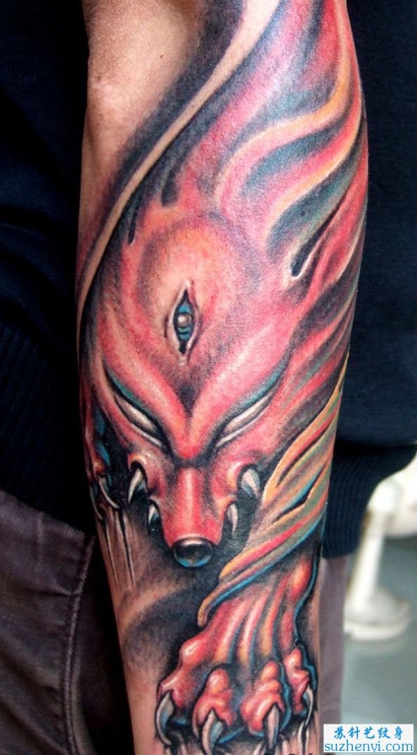 手臂九尾狐纹身_臂部纹身图案大全_纹身图吧