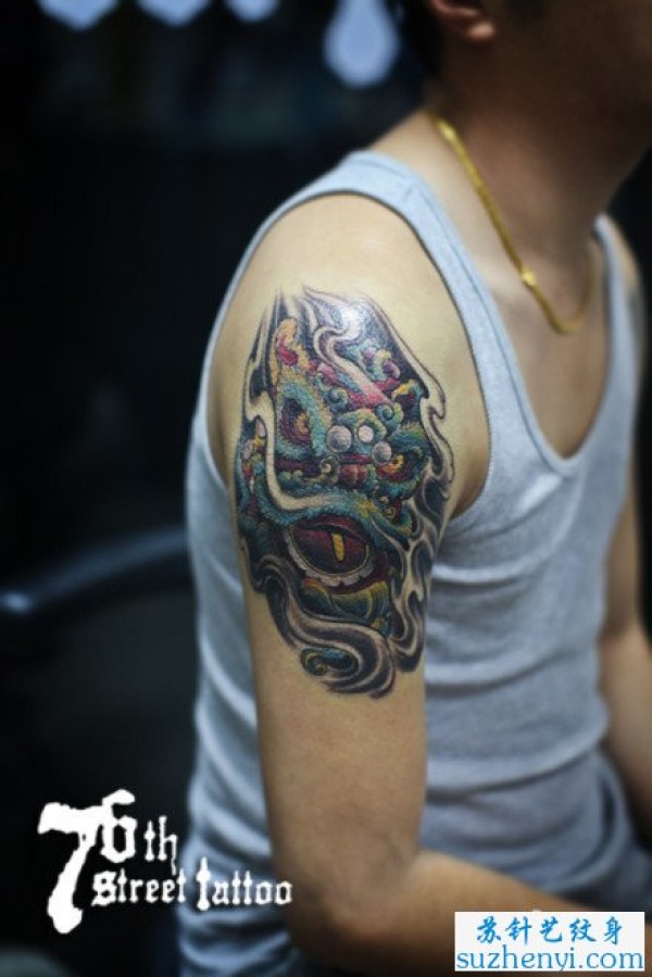 手臂狮头纹身_臂部纹身图案大全_纹身图吧