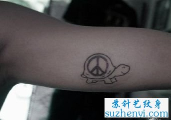 手臂可爱小乌龟反战标志纹身_臂部纹身图案大全_纹身图吧