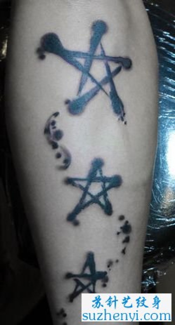 手臂水墨风格五角星纹身_臂部纹身图案大全_纹身图吧