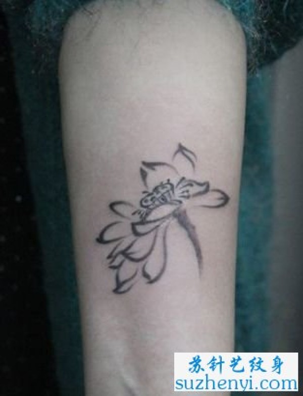 手臂水墨风格莲花纹身_臂部纹身图案大全_纹身图吧