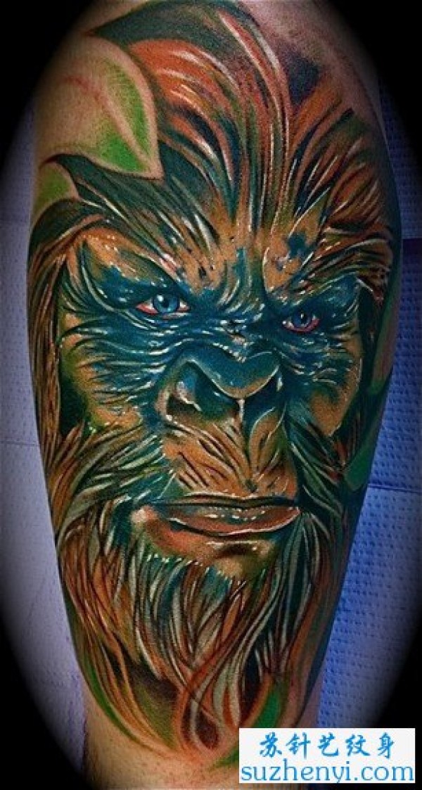 手臂彩色猩猩纹身_臂部纹身图案大全_纹身图吧