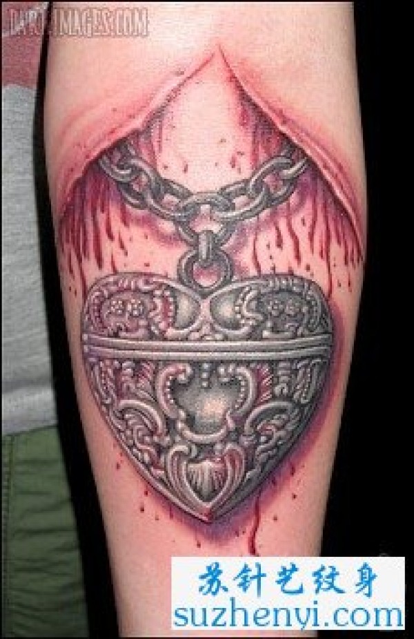 手臂撕皮爱心锁链纹_臂部纹身图案大全_纹身图吧